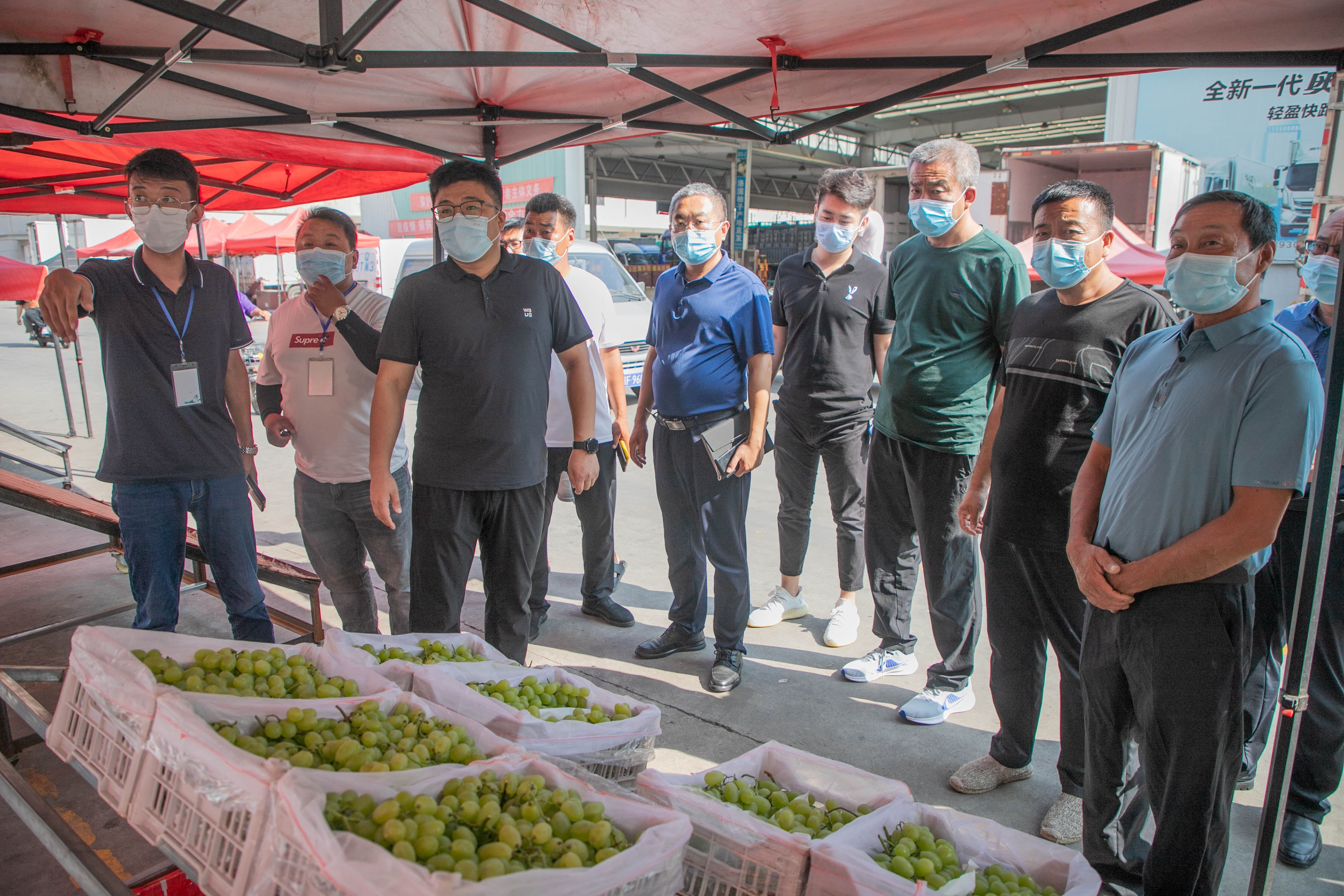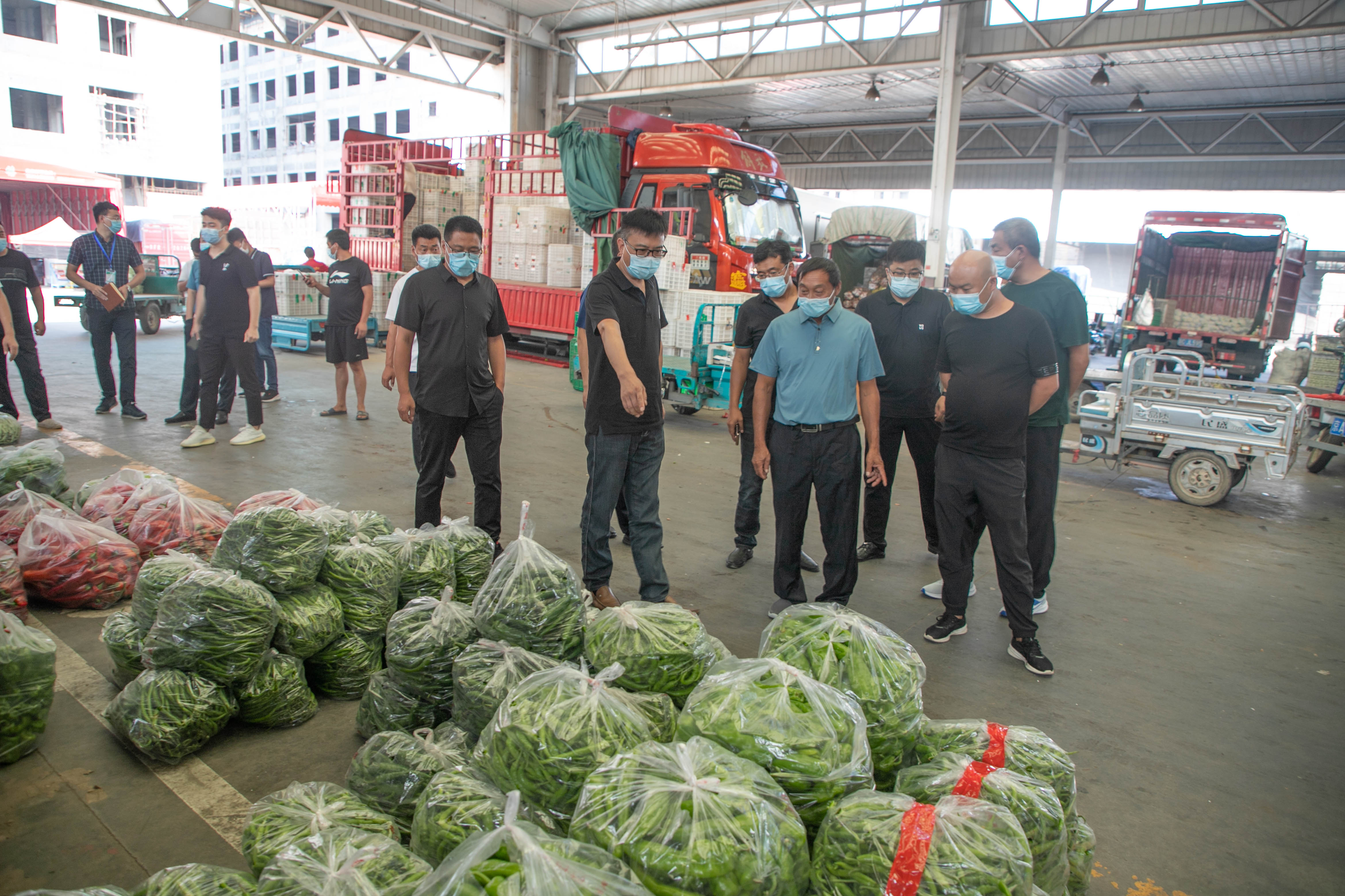 8月9日,保定市望都縣副縣長王作丕率領農業農村局局長田濤,辣椒中心主任黃永發一行到高碑店市場就相關農產品的市場行情、在售品種、銷售渠道等情況進行調研考察,并就葡萄、辣椒及食用菌的種植、采摘、存儲等相關問題與場內商戶展開交流學習。