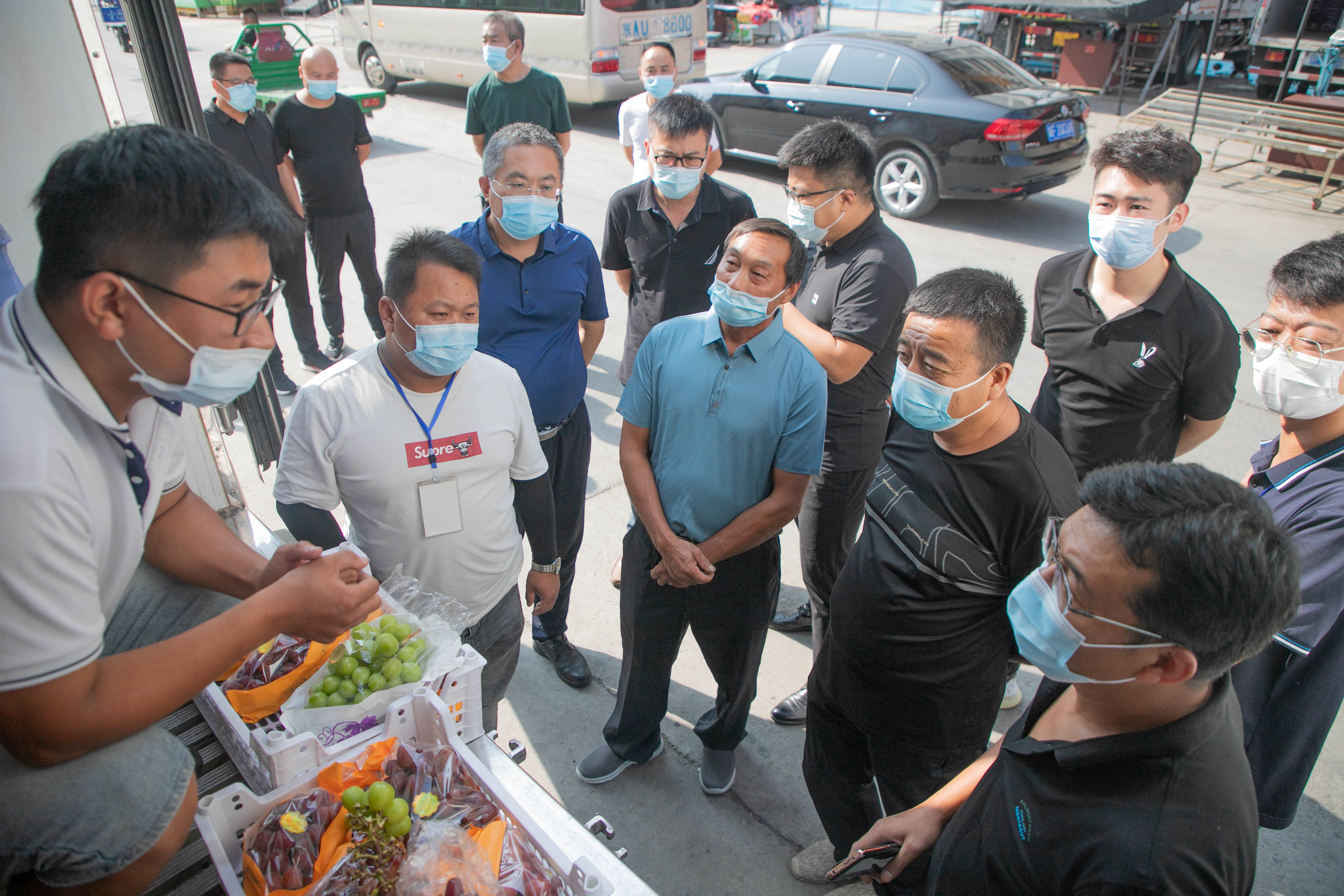 眼下正值葡萄旺季,明媚的8月天,驕陽似火,王作丕和團隊成員興致盎然。在葡萄交易區,看到貨艙里的陽光玫瑰果形優美,顆粒飽滿,大家的熱情十分高漲。在即將竣工的首衡河北新發地冷鏈基地項目,得知高碑店市場在承接京津冀農產品貿易方面扮演著舉足輕重的角色后,王作丕感嘆河北新發地是憑一個企業盤活了一個區域。