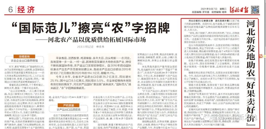 河北日?qǐng)?bào)第六版經(jīng)濟(jì)專(zhuān)欄9月7日刊發(fā)《河北新發(fā)地助農(nóng)“好果賣(mài)好價(jià)”》。首衡河北新發(fā)地圍繞產(chǎn)銷(xiāo)對(duì)接,實(shí)施精準(zhǔn)化資源對(duì)接,加大對(duì)品牌塑造、營(yíng)銷(xiāo)包裝等方面的開(kāi)發(fā),加快提升產(chǎn)銷(xiāo)對(duì)接的市場(chǎng)化、品牌化、信息化水平,助力鄉(xiāng)村振興發(fā)展。