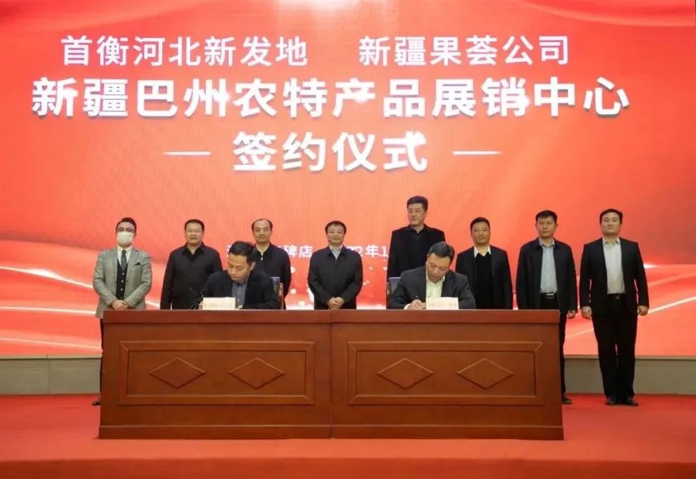 在巴州黨委副書記、河北省援疆工作前方指揮部指揮長(zhǎng)徐付軍,巴州人民政府副州長(zhǎng)、河北省援疆工作前方指揮部副指揮長(zhǎng)王成,高碑店市委書記邱強(qiáng),高碑店市市長(zhǎng)安熠輝,首衡河北新發(fā)地集團(tuán)董事長(zhǎng)米亞林,巴州庫(kù)爾勒市委常委、副市長(zhǎng)、石家莊市援疆前方指揮部副指揮長(zhǎng)常良等領(lǐng)導(dǎo)的共同見(jiàn)證下,首衡河北新發(fā)地集團(tuán)總裁魏樹儉與果薈公司董事長(zhǎng)徐強(qiáng)作為雙方代表進(jìn)行簽約。
