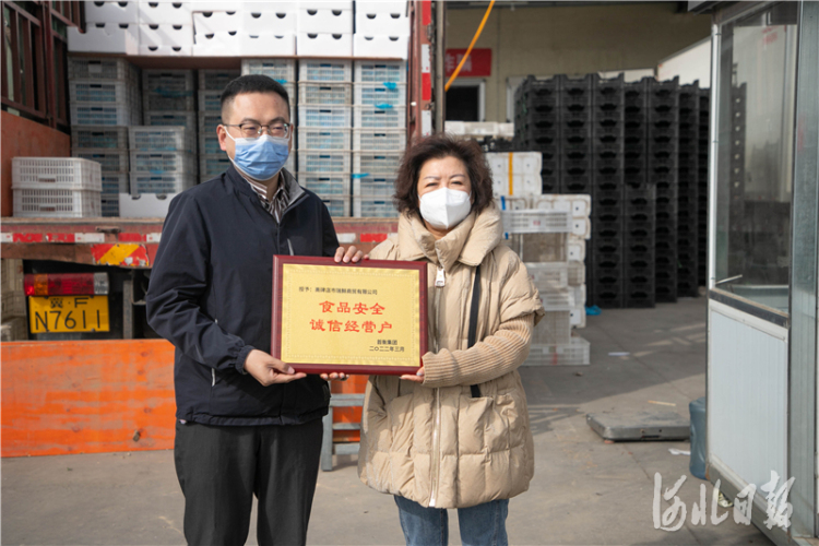 筆者現場看到,首衡河北新發地聯合高碑店市市場監督管理局在園區內正在舉辦3.15食品安全宣傳活動,以“誠信經營、共促消費公平”為主題組織商戶、員工普及相關法律法規,增強商戶“守法經營,誠信經營”的理念,從食品流通源頭上確保食品安全,倡導商戶們誠信經營,提高對食品安全關注度。