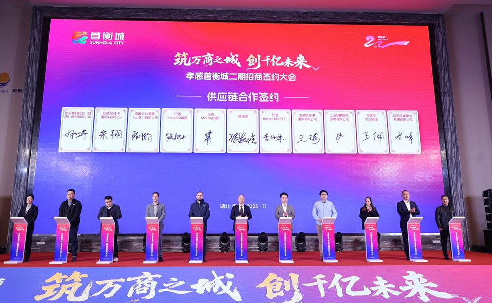 11月28日,“筑萬(wàn)商之城 創(chuàng)千億未來(lái)”孝感首衡城二期招商簽約大會(huì)在湖北孝感召開(kāi)。近800名各界代表齊聚,見(jiàn)證華中農(nóng)產(chǎn)品商貿(mào)樞紐升級(jí)。