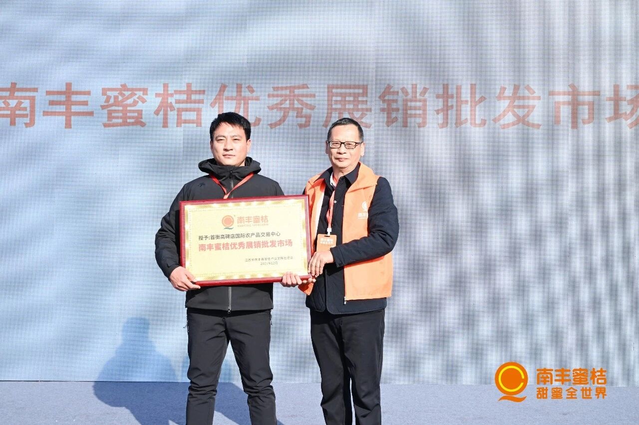 隨后,江西省南豐縣蜜桔產業發展促進會授予首衡市場“南豐蜜桔優秀展銷批發市場”牌匾,以表彰其在推廣南豐蜜桔、銜接產銷方面所做出的持續貢獻。